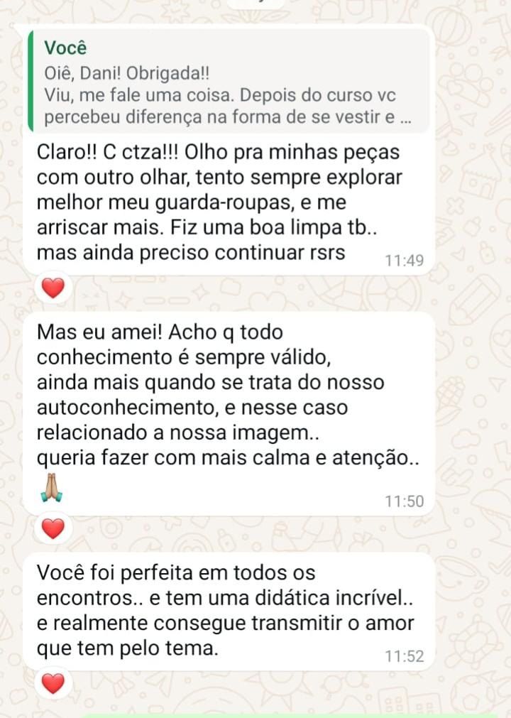 Depoimentos de alunas que transformaram a aparência através da forma de se vestir